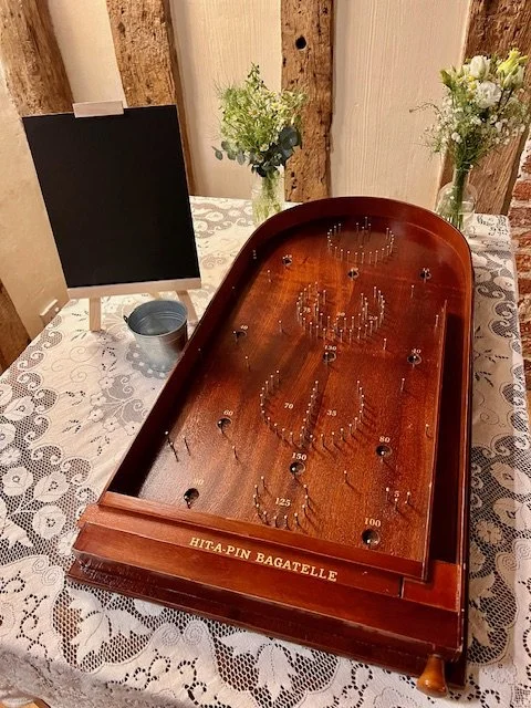 Traditional wooden vintage Bagatelle, Bar Skittles, Shove Ha’penny each 16.50
